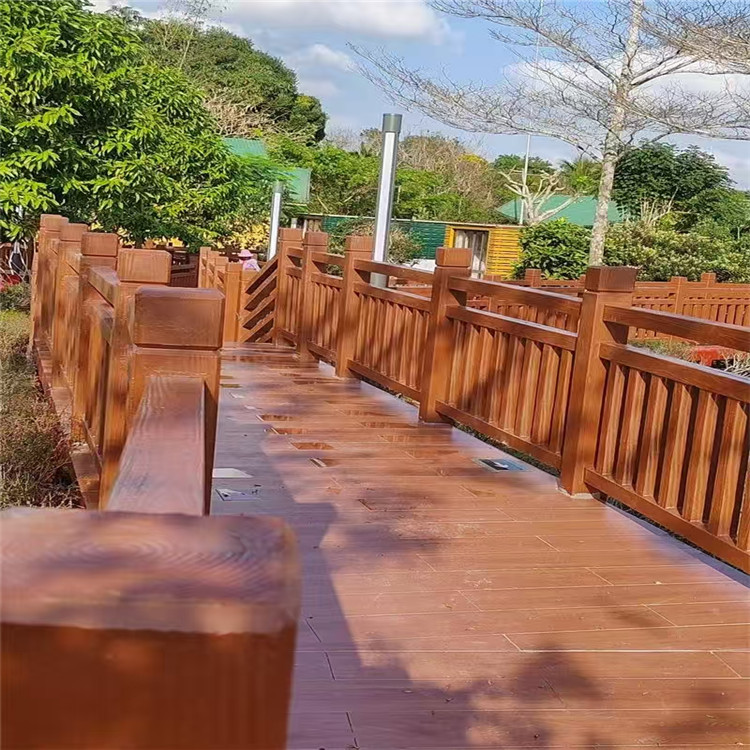 河道景观水泥仿木栏杆厂家 市政园林仿木色仿树皮仿藤护栏 美观大方