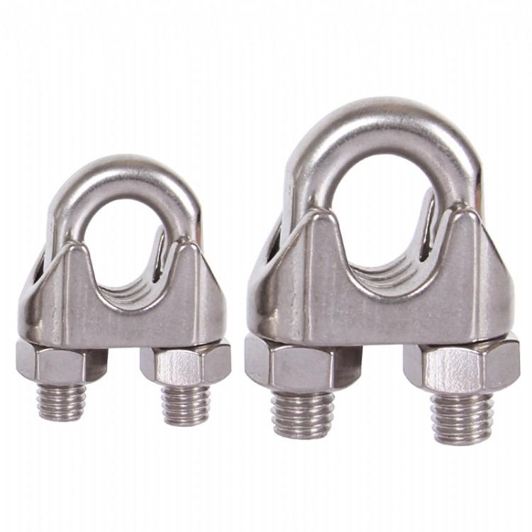 钢丝绳的绳卡主要用于钢丝绳的临时连接和钢丝绳穿绕滑车组时后手绳的固定,以及扒杆上缆风绳绳头的固定等,包括磷化涂层钢丝绳、镀锌钢丝绳、不锈钢丝绳及光面钢丝绳。它是起重吊装作业中用的较广的钢丝绳夹具。市场上常见的一般均是碳素钢铸造工艺,国家标准规定,铸造钢丝绳卡头可以使用。但随着现代工业化发展,铸造钢丝绳卡头由于自然工艺的一些缺陷(气孔、裂纹、夹砂),在潮湿、酸性碱性、冲击频动等特殊场合,应谨慎使用。河北铁人机械现已开发出锻制钢丝绳卡头。钢丝绳卡头的用途:一、碳钢铸造钢丝绳卡头常用静态栓结、绳索拉线紧固,如电力、通讯线路,捆扎紧固等。锻制钢丝绳卡头常用于吊运提升承载使用,如各种工程起重机械,冶金矿山设备、油田井架、港口铁路装卸、林业机械、电力设备、航空及海上、陆地运输、工程抢救、打捞沉船、厂矿企业起重、吊装、牵引索具上。不锈钢钢丝绳卡头因其耐腐蚀、不易生锈的原因,则被用于船舶配件、化学厂、辐射等环境。二、特点:与钢丝绳等强度,使用安全,外形美观过渡平滑,吊装作业安全负荷大,可抗击冲击负荷,使用寿命长。