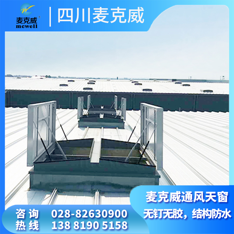 三角型电动采光排烟天窗的无钉无胶、结构防水技术特点:窗扇不打钉、不打胶,依靠结构构造防水,摒弃传统打钉固定、硅胶粘接防水的方法,消除了渗漏隐患;.天窗美观大方、结构强度高;.天窗做工精细,水密性、气密性能满足要求,“无钉无胶、结构防水”电动排烟天窗是四川麦克威研发创新并结合多年来积累通风采光排烟工程经验推出的新一代升级天窗产品,四川麦克威为客户提供专业的无钉无胶排烟天窗生产制造、供货信息、安装方案和报价。