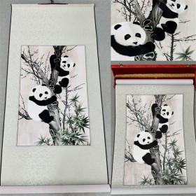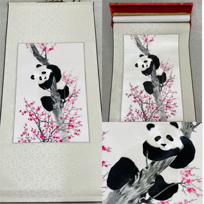 绣美 蜀绣国宝熊猫卷轴画礼盒装 高端大气 支持定制