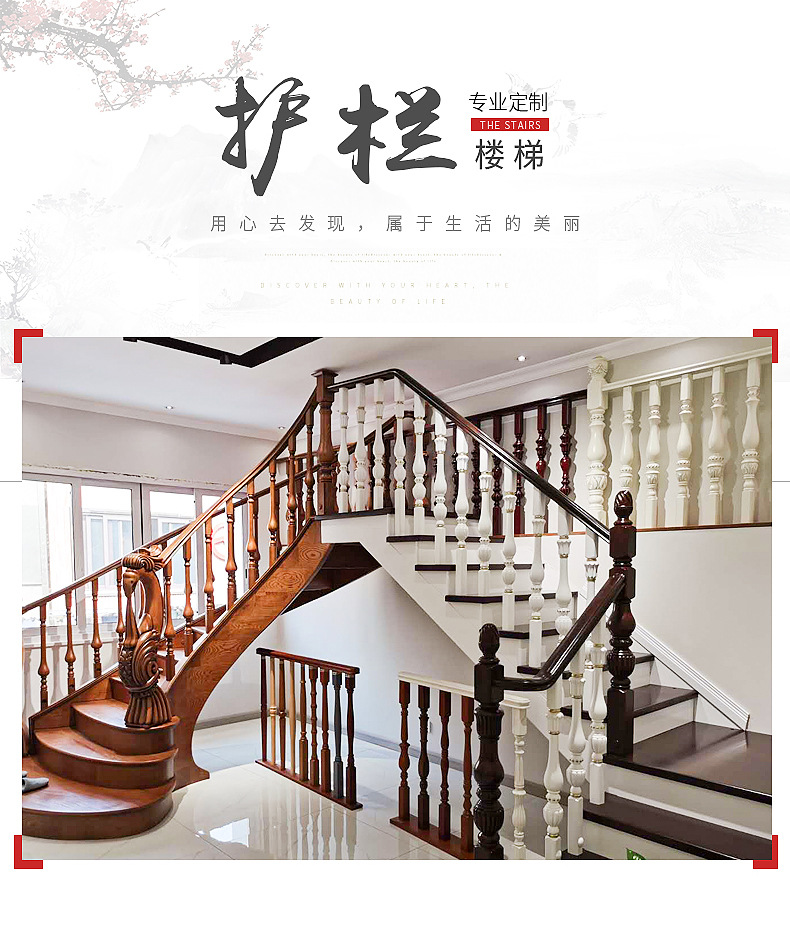 楼梯立柱栏杆实木楼梯扶手 家用阳台护栏实木栏杆加工定做