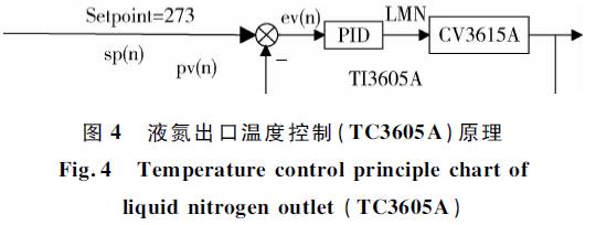 制冷机在运行中发现控制液氮预冷的阀门CV3615A在自动控制下开度变小,同时级换热器的温度TI3610A无法维持在设定值而温度升高,使得制冷能力降低。液氮供应阀门CV3615A采用的PID控制,主要用来控制级换热器的温度TI3610A和氮气出口管道温度TI3605A,分别如图3、图4所示。