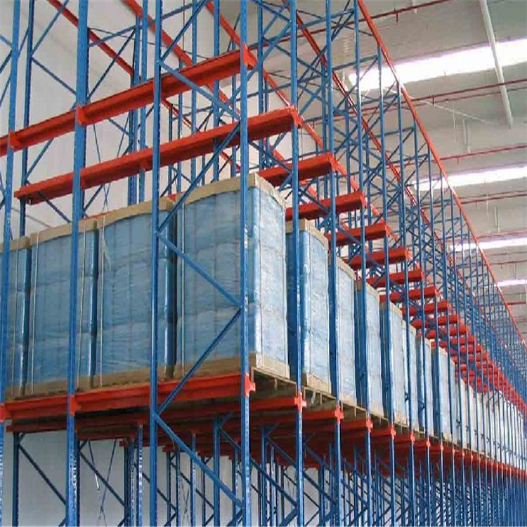 贯通式货架也叫驶入式货架,是仓库重型货架的一种。贯通式货架采用全插接组装式结构,柱片为装配式结构,牛腿为一次性冲压十字型牛腿,强度高刚性好,外形美观,牛腿梁为斜坡式肋筋型牛腿梁,顶梁与柱片间为螺栓连接式结构;靠墙区域的货架总深度一般控制在6个托盘深度以内,中间区域可两边进出的货架总深度一般控制在12个托盘深度以内,以提高叉车存取的效率和可靠性。