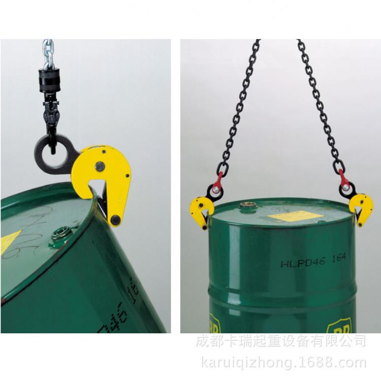 此系列桶夹用于提升或运输油桶。如果运输空桶或密封油桶,单个桶夹操作即可。如果操作打开的装满的油桶,则需要两个桶夹配备链条操作。
