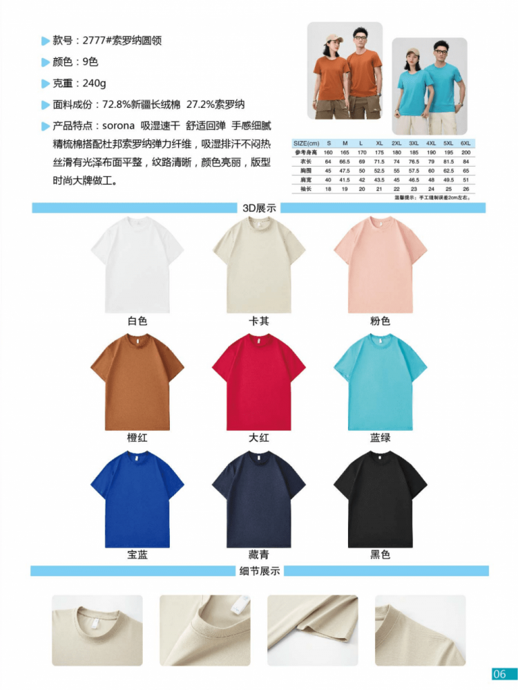 JQ 2777 索罗纳圆领T恤短袖批发 佳绮服装定制生产厂家