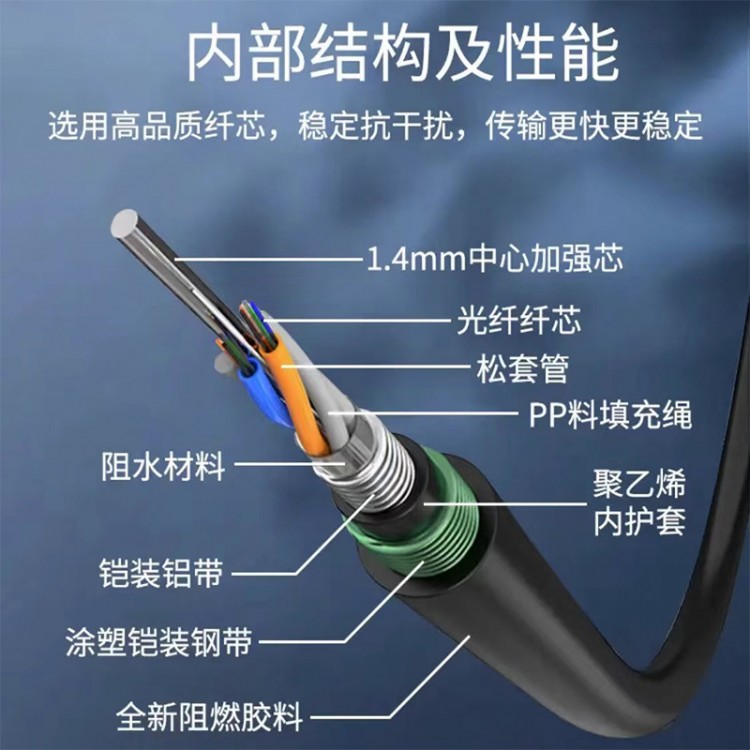 GYTAH58铠装阻燃光缆4芯12芯24芯48芯-144芯铁路地埋室外光缆厂家