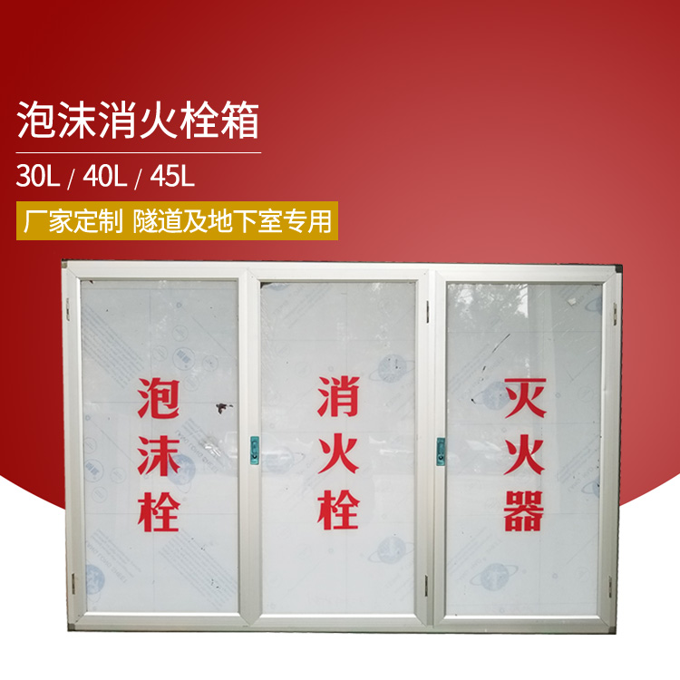泡沫消火栓箱在灭火时当有不低于0.35MPa压力的水以很高的速度流过泡沫消火栓箱的管道及管线比例混合器时,由于射流质点的横向移动的扩散作用,比例混合器的室内形成真空(负压),于是泡沫液储罐内的泡沫液在大气的压力作用下通过吸液管进入混合器,与压力水混合,达到一定比例的混合液。当具有一定压力的混合液流到喷枪时使泡沫混合液发泡。从而达到泡沫灭火的效果。