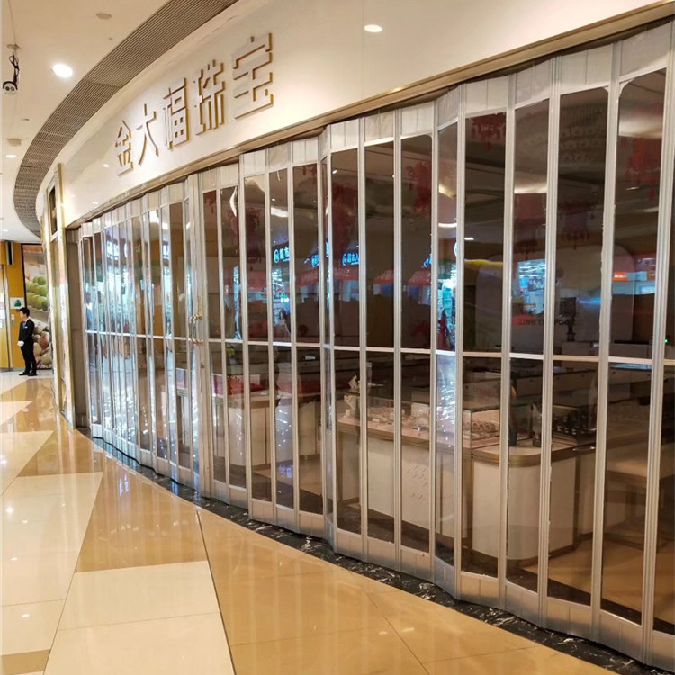 水晶推拉门 商场弧形手拉铝合金折叠门 款式美观