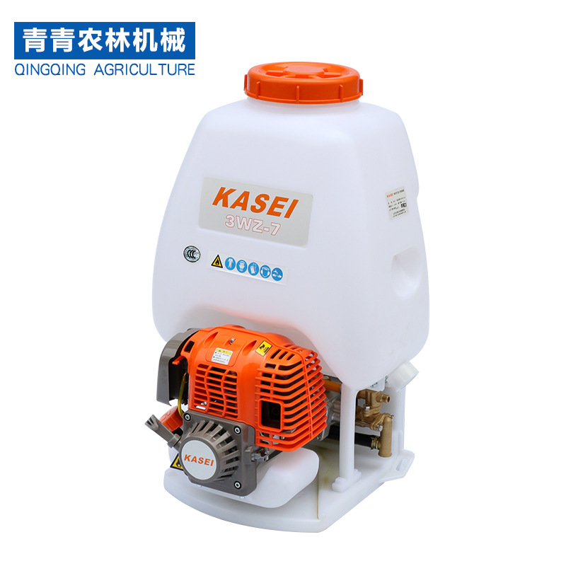 背负式机动喷雾喷粉机主要由机架、离心风机、汽油机、油箱、药箱和喷洒装置等部件组成。