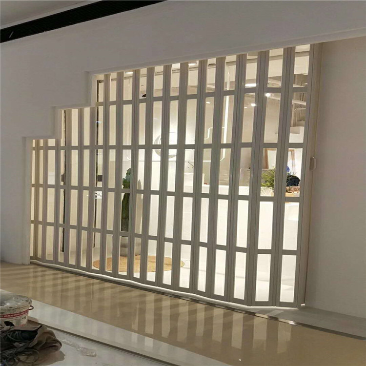 PVC折叠门主要适用于,生产车间、超市、商场、办公楼、展示厅、家庭厕所、客厅、厨房等场所的隔断用途,屏风用途,内门、外门均可安装使用。可有效起到隔温、防尘、防虫、降噪、隔音、遮蔽等作用。