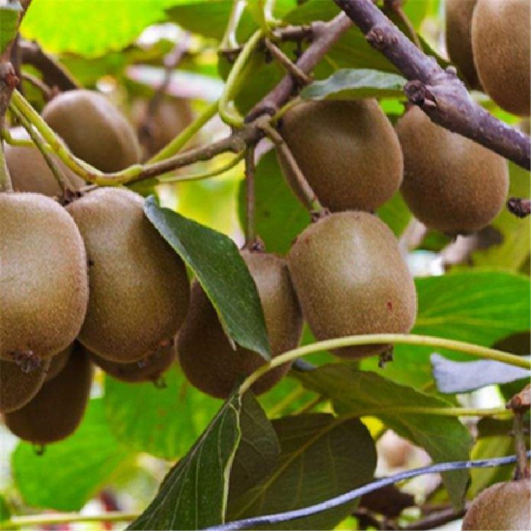 猕猴桃苗是通过对野生猕猴桃实生单株选育而成的一种稀有优良品种,具有以下突出特征:果实美,口感好,营养价值高。鲜果横剖面沿果心有紫红色线条呈放射状分布,似太阳光芒四射,色彩鲜美,故称“红阳猕猴桃”。红阳猕猴桃品种果型中大整齐,平均单果重60~80克,大果可达110克;果实短圆柱形,肉质鲜嫩、香甜清爽(馥香型,含糖18.5%),果心小,果味浓。第三年平均株产20~25kg左右,盛产期亩产可达2000~3000kg,丰产稳产性强