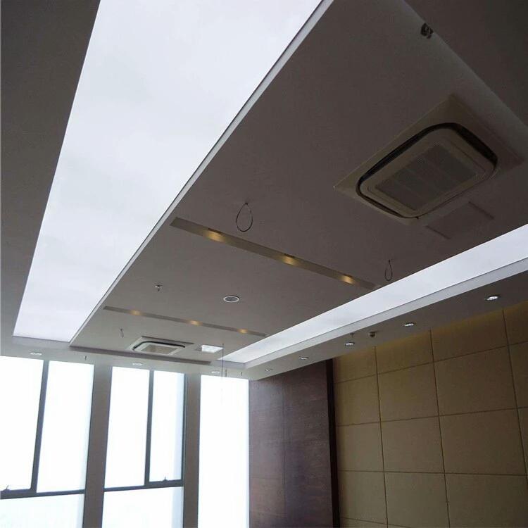 软膜天花,已日趋成为吊顶材料的材料。软膜采用特殊的聚氯乙烯材料制成, 0.18 -0.2mm,每平方米重约180~320克,其防火级别为 B1 级。软膜通过一次或多次切割成形,并用高频焊接完成。软膜需要在实地测量出天花尺寸后,在工厂里制作完成。软膜尺寸的稳定性在摄氏 -15 度到 45 度。透光膜天花可配合各种灯光系统(如霓虹灯、荧光灯、LED灯)营造梦幻般、无影的室内灯光效果。同时摒弃了玻璃或有机玻璃的笨重,危险以及小块拼装的缺点,已逐步成为新的装饰亮点。软膜天花主要有软膜、扣边条、龙骨三部分组成;