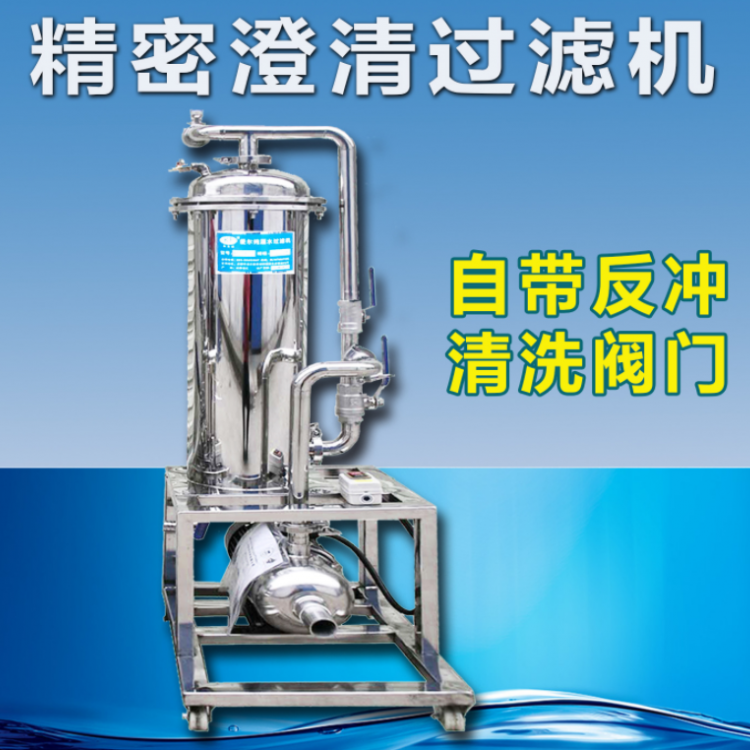 该机能有效解决,酒类、饮料,及茶类,果汁,食用油,及高温液体,浑浊,沉淀,悬浮物问题。过滤精度高,达到0.1微米,过滤后的液体,清澈透明,无沉淀杂质。区别于传统的布袋式滤芯,需反复拆卸清洗问题,该机无需拆卸清洗,自带反冲清洗阀门,及排污阀门,操作方便使用寿命长,可根据客户饮料液体的不同情况,选用不同精度的不锈钢滤芯。该机及滤芯可反复使用寿命长达10年以上。