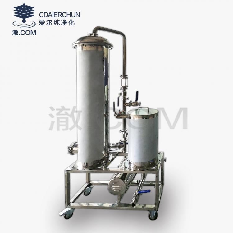 该过滤机的硅藻土预涂层采用食品级无污染硅藻土作为助剂一次预涂即可,有缩短预涂助剂、减少助剂用量、清洗容易,免拆卸耗时清洗,只需反冲即可完成99%清洗工序、节约洗涤水量、滤芯采用纯304不锈钢制成,使用过滤时间长达10年以上,滤芯无滤布结构,不需要像传统卧式硅藻土一样频繁更换清洗滤布节省时间,过滤后对酒体脂香成分无任何损伤,保持100%原口感,过滤后的酒体清澈透明,可直接灌装装瓶