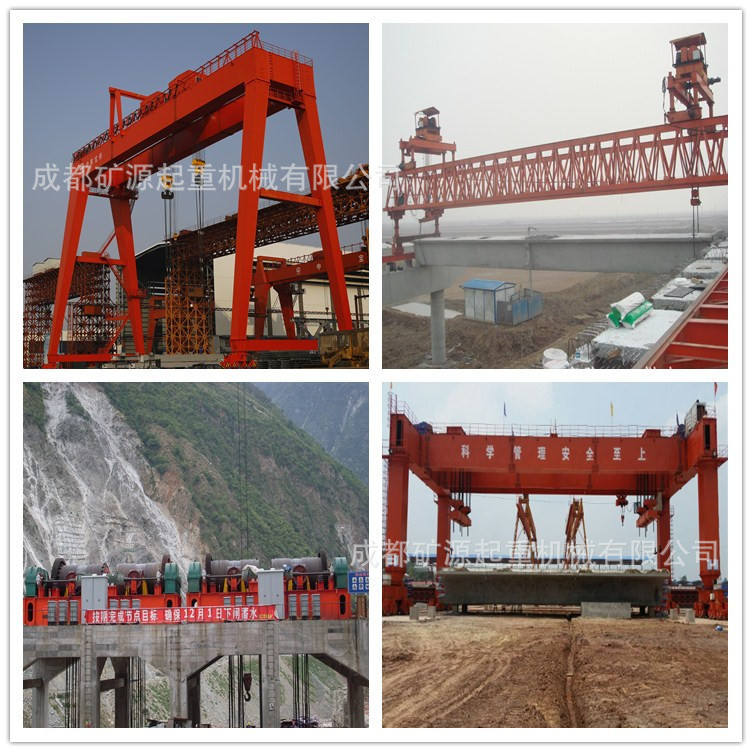 架桥机主要是架设桥梁用,吊运混凝土梁到指定的位置,用来调整方向,是靠四个支柱来完成支撑的。架桥机在公路架桥过程中,主要作用是把预制好的梁片运输到桥墩上。而龙门吊则是把梁片从地面上提起来交给运梁车,再由运梁车把梁片运输到架桥机下面。两者是相互配合工作的。架桥机也分好几个类型的,根据行走方式不同,有的架桥机是靠驱动轮行走,有的是导梁结构。提梁机则分为包厢结构和衍架结构,按照吨位的不同,小吨位采用电动葫芦,大吨位采用起重小车。