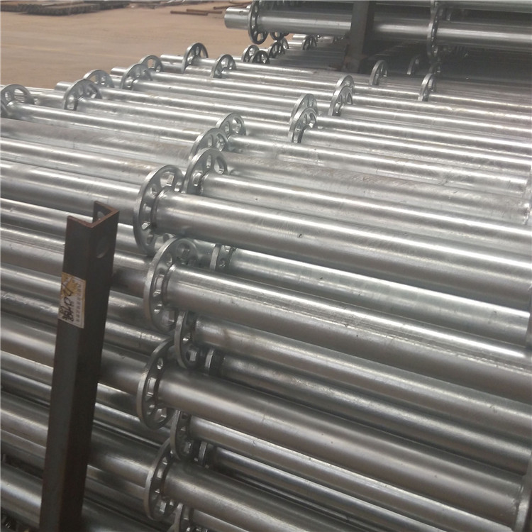 盘扣式脚手架又叫圆盘式脚手架,和轮扣式脚手架并不是同一类型。在国内很多人把盘扣式脚手架和轮扣式脚手架混为一谈,很明显是错误的。盘扣式脚手架技术起源于德国,是欧洲和美洲的主流产品,支撑架分为立杆及横杆、斜杆,圆盘上有八个孔,四个小孔为横杆专用;四个大孔为斜杆专用。横杆、斜杆的连接方式均为插销式的,可以确保杆件与立杆牢固连结。横杆、斜杆接头特别依管的圆弧制造,与立杆钢管呈整面接触,敲紧插销后,呈三点受力( 接头上下二点及插销对圆盘一点)可牢牢固定增加结构强度并传递水平力,横杆头与钢管身采用满焊固定,力量传递无误。而斜杆头为可转动接头,以铆钉将斜杆头与钢管身固定。至于立杆的连接方式是以四方管连接棒为主,而连接棒已固定在立杆上,不用另外的接头组件来组合,可省却材料遗失及整理的麻烦。