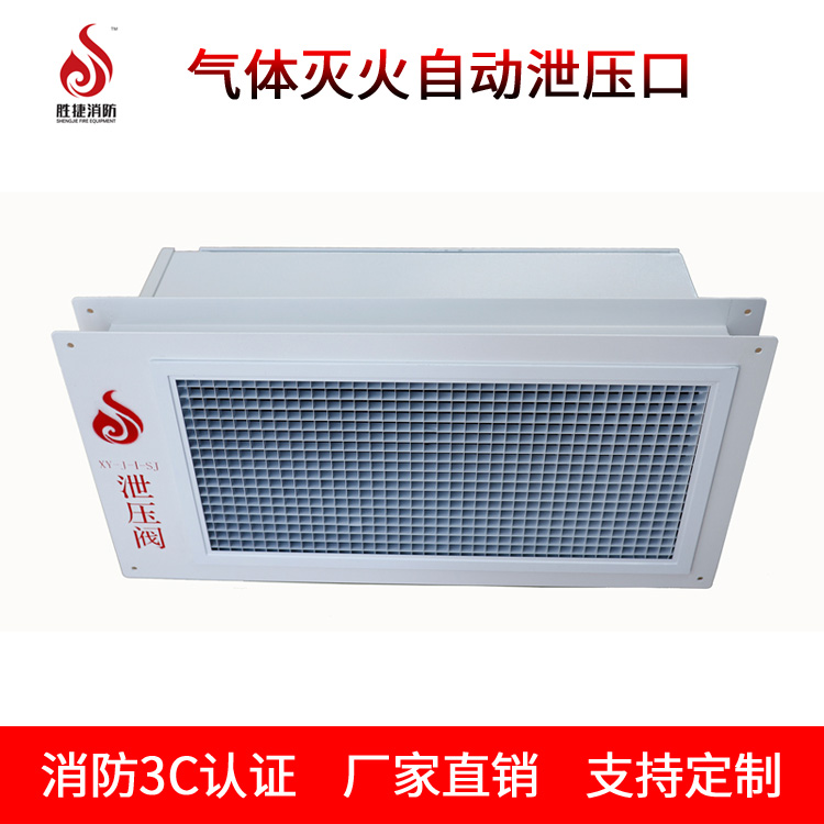 本公司生产的机械型泄压装置也称自动泄压口,安装在灭火防护区墙体上,平时呈关闭状态,当气体灭火系统对防护区实施灭火时,泄压装置在一定压力下自动打开泄压,确保防护区安全;当压力降低到一定值时,泄压装置自动关闭。