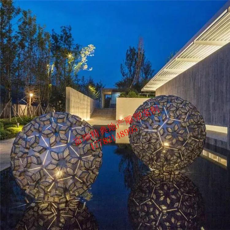 不锈钢球形镂空水景雕塑地产售楼部雕塑小品玻璃钢铸铜圆雕制作