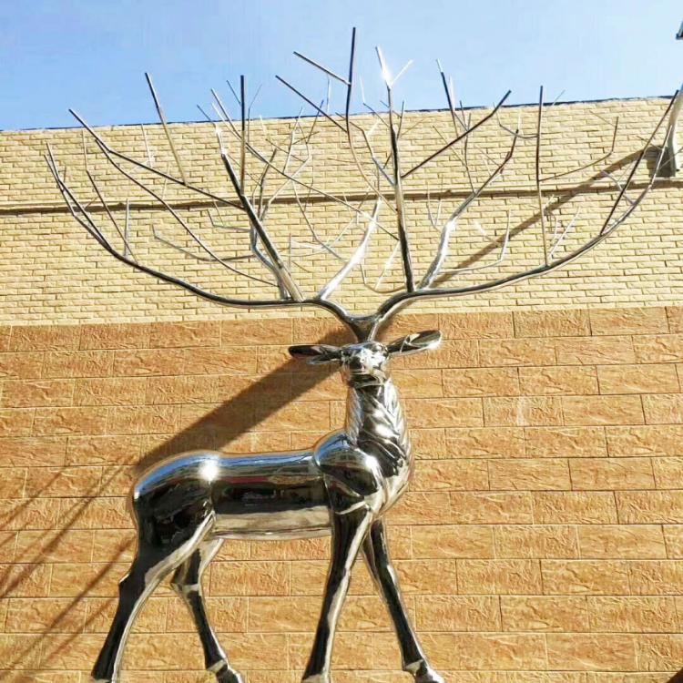 不锈钢镜面园林景观小品不锈钢镂空小鹿现代简约雕塑设计
