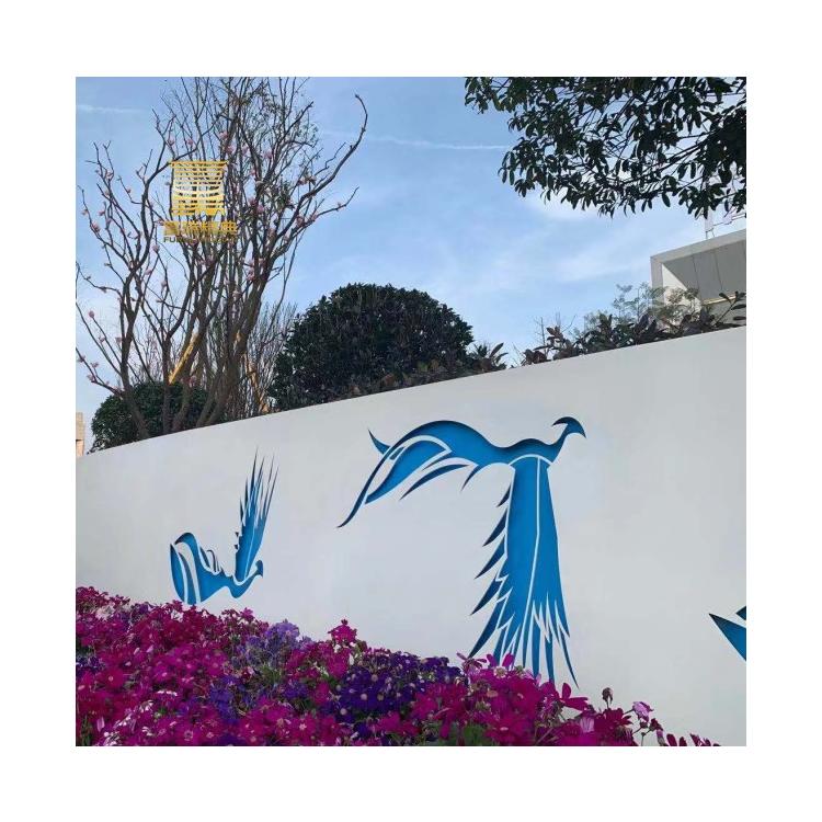 富瑞精典示范区售楼部灯光花池铝板镂空切割飞鹤景观造型树池花池
