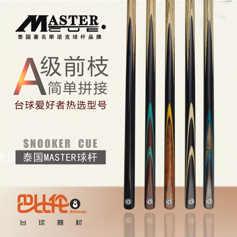 泰国进口master台球杆斯诺克小头杆 厂家直销 台球杆小头单支通杆斯诺克桌球杆美式黑八