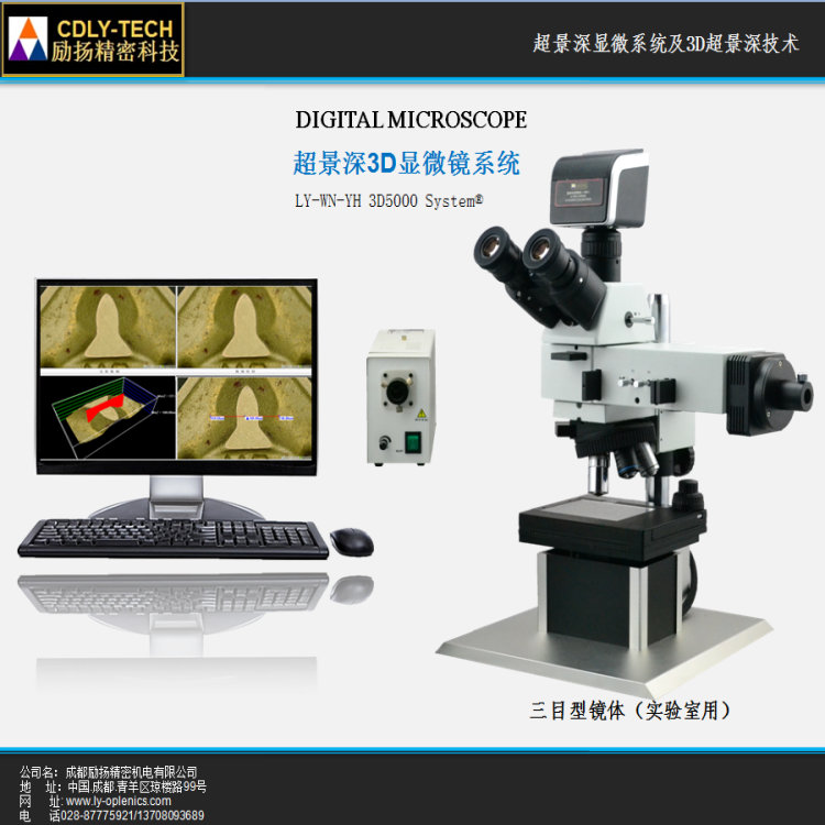 LY-WN- YH 3D SYSTEM------ 3D超景深显微系统轻松解决以上不足,彻底突破显微镜的光学固有限制。可以在10秒之内得到样品的全息立体图像。彻底解决传统光学系统大倍数与大景深不能共存的问题,可以轻松的对样品不同高度进行优质成像,得到平面优质图片,继而构建3D模型,并通过智能测量模式,准确测量三维空间尺寸。在光学倍数放大范围内,不仅能够获得与电镜相同的景深和光学细节,还能提供电镜所没有的多种照明观察方法和真实色彩。在得到优质平面图像/3D图像的同时,本系统还能提供立体样品的全自由度模型观察,使得用户能够从任意角度观察样品,并采用各种模拟照明技术,突出细节。系统通过模块化的设计,可以实现任意一台显微镜上3D观察、测量。系统软件采用新的位移矫正和边缘识别,边缘修正技术,可以彻底消除图像边缘锯齿状。即使是在倾斜体视显微镜上,一样可以轻松得到清晰图像和全自由度模型开创了3D显微低成本模式。是低倍(光学<2000X.视频<10000x)情况下电镜的理想替代。远远超出常规平面检测(包括电镜)的范围。将光学显微镜的使用提升到一个新的高度。