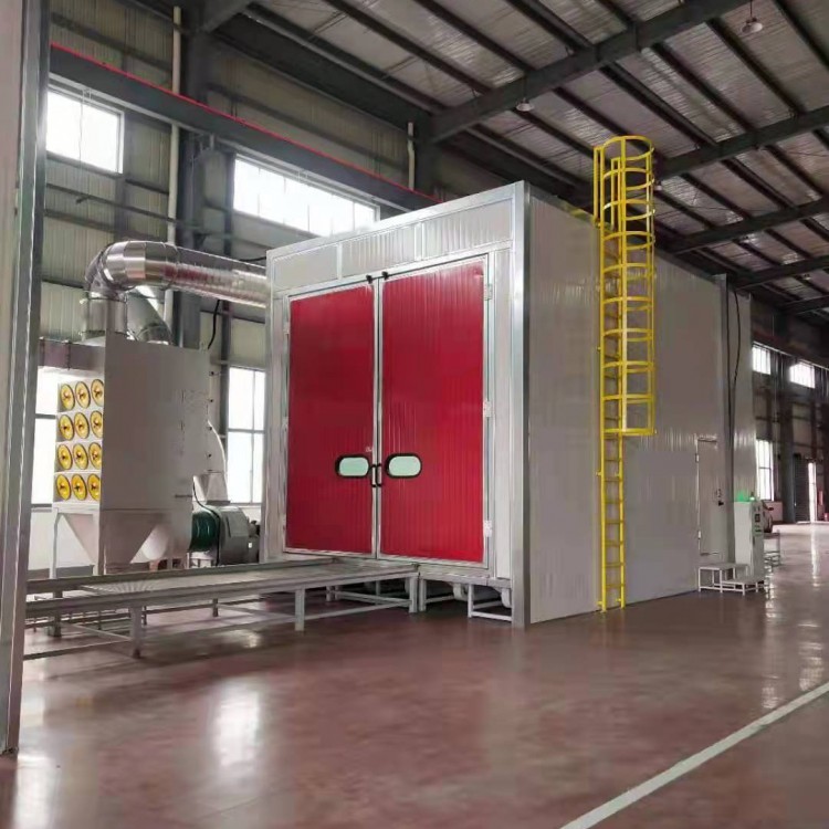 喷砂房的主要特征是喷砂过程中操作者处于室内。防护服和头盔可防止操作者受到磨料冲击,通风装置通过头盔为操作者提供新鲜空气。