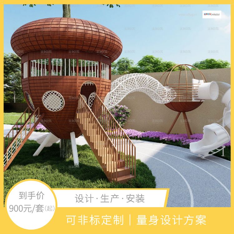 非标定制户外无动力游乐设施设备 松果屋造型滑桶