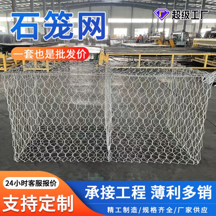 石笼网铅丝笼河堤护坡防汛镀锌固滨笼雷诺护垫铁丝网防护网格宾网