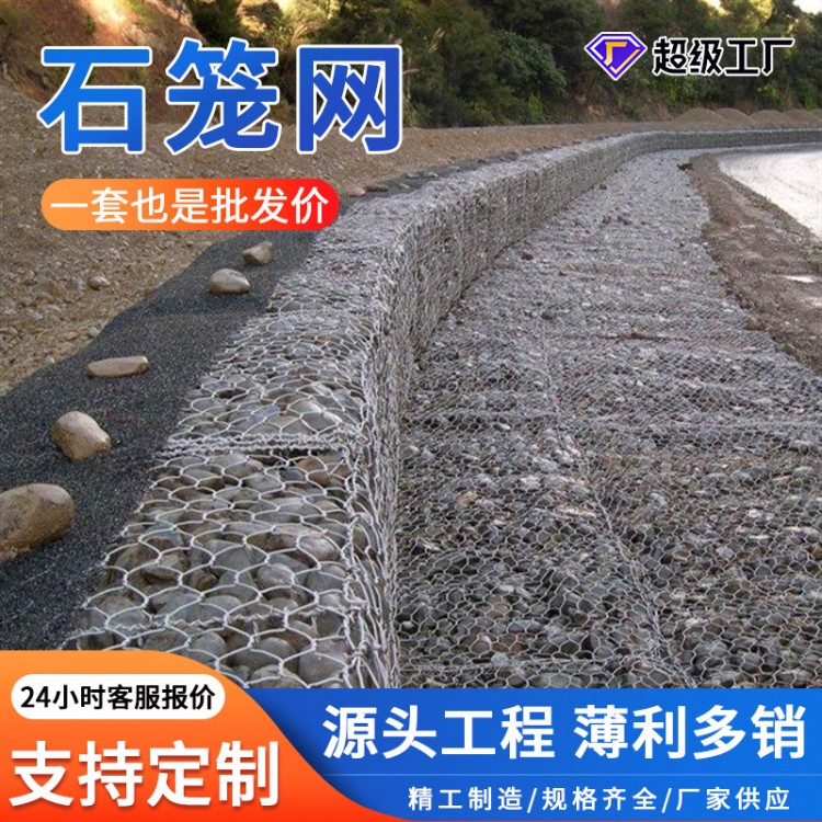 定制格宾石笼网热镀锌铁丝石笼网镀锌六角网河道防洪包塑格宾网