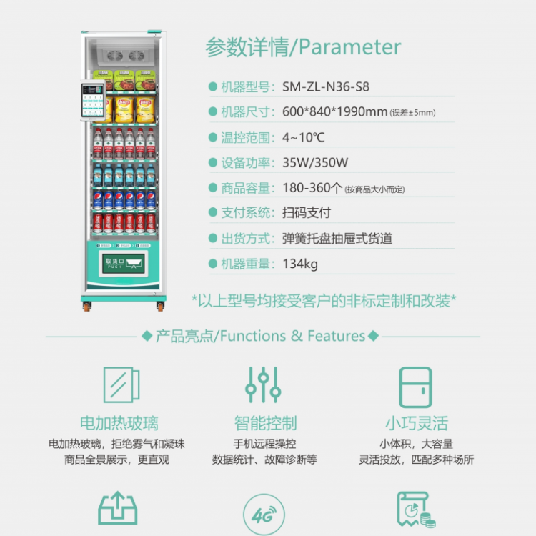 小8寸触屏制冷售货机 36货道 自动扫码常温售货机