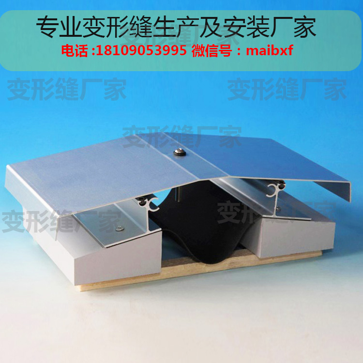 是由铝合金基座、铝合金中心盖板(不锈钢板、黄铜板)不锈钢滑杆组成。金属盖板型的特点是在盖板与固定于变形缝两侧的基座之间采用不锈钢滑杆连接,安装时滑杆按45度斜放,当基座变位时,金属盖板始终保持位于缝的中心。具有与装修层结合平整的特点。适用于50-500mm缝宽。